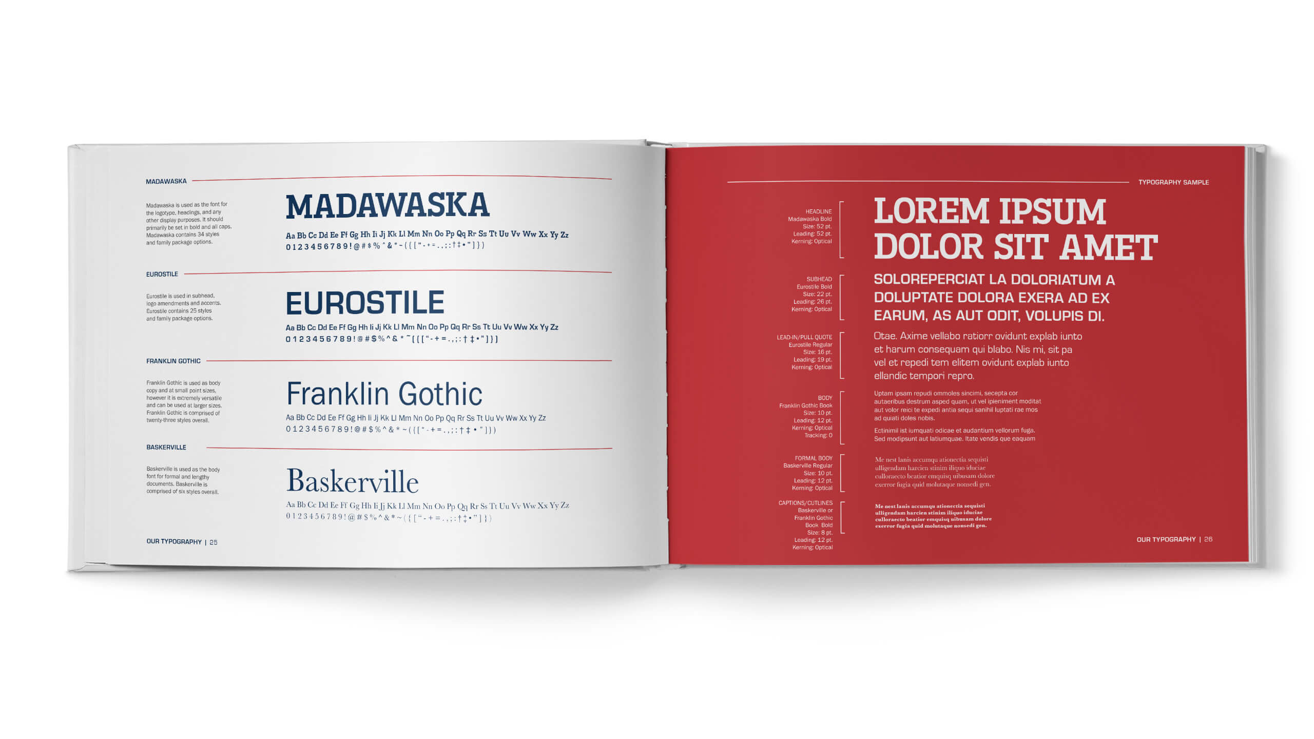 Like colors, a college’s typography offers a shortcut to instant brand recognition by enhancing brand identity and reinforcing brand personality. A Mad Genius brand standards guide specifies the primary typefaces to be used for: