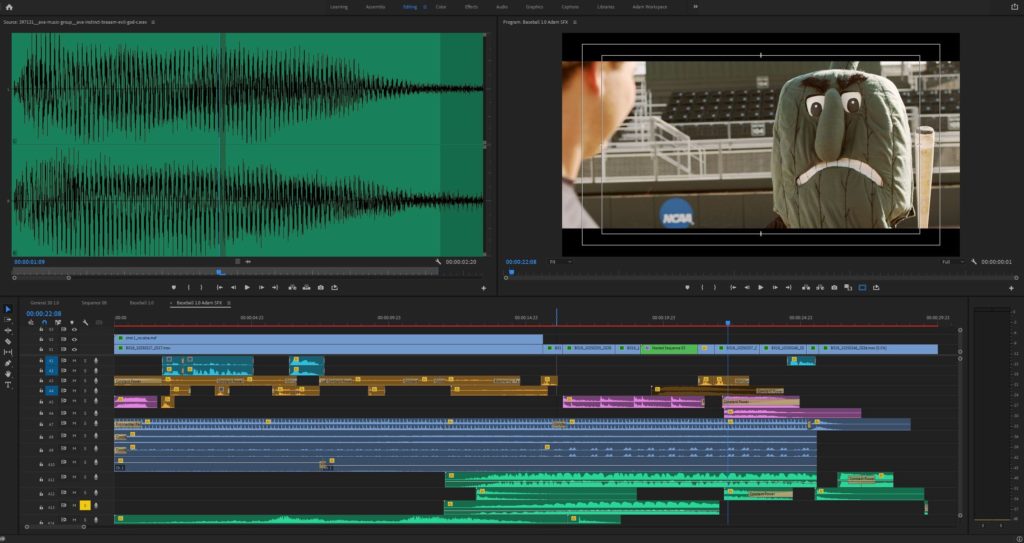 The athletics/baseball commercial is a great example of that as there are only three lines spoken throughout the entire spot. The rest of the audio contribution to the story has to be told through sound effects, Foley (which are every day, real-life sounds like footsteps, clothing rustle, and other movement), music, and ambiance.